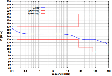| Common mode impedance | 150 kHz – 24 MHz: 150 ? ±20 ? 24 MHz – 80 MHz: 150 ? +60 ?/-45 ? 80 MHz – 230 MHz: 150 ? ±60 ? |